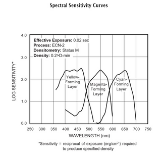 Each layer has its own nonlinear density response: the H&D characteristic curve. Each channel has its own gamma, shoulder, and toe. Then there are interimage effects between layers, dye absorption characteristics, and the grain structure of the emulsion. Our plugin models each of these from measured Kodak data.